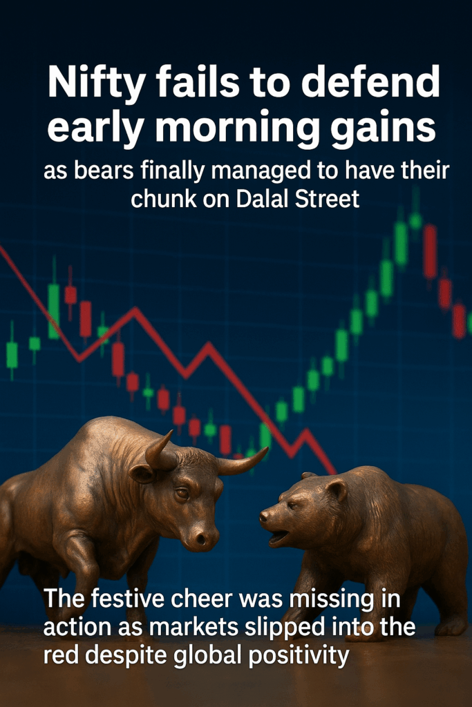 The Indian stock market witnessed a lackluster trading session today as Nifty and Sensex slipped into the red, failing to sustain their early morning gains. Despite positive global cues, bears took charge of Dalal Street, dampening the festive mood.